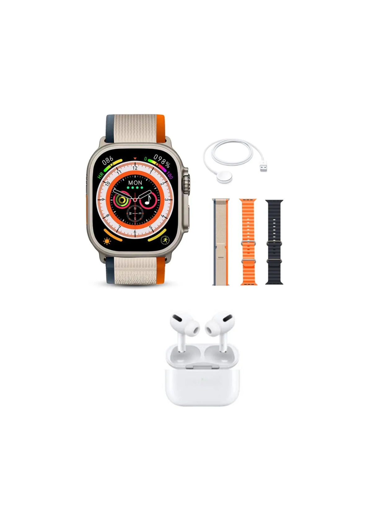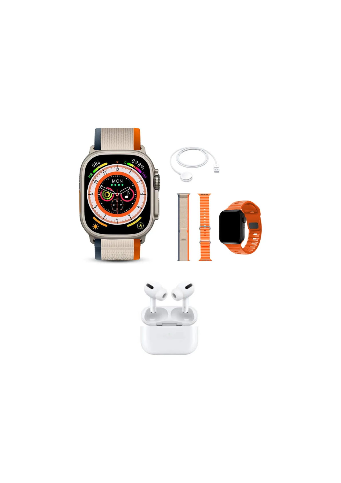 Reloj Inteligente + 3 Correas Ultra 2 + Audifonos Blanco Mesh Naranja Plateado